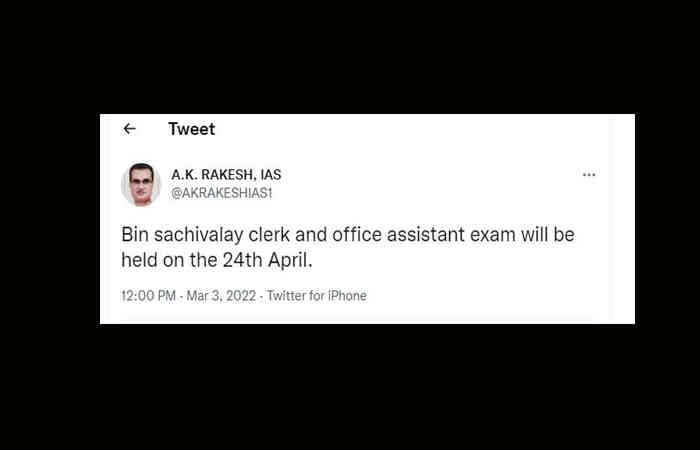 અગાઉ 13 ફેબ્રુઆરીએ રવિવારના રોજ પરીક્ષા યોજાવાની હતી. તે પહેલા જ ગૌણ સેવા પસંદગી મંડળે બિન સચિવાલય સેવાના કારકૂનની પરીક્ષા મોકૂફ રાખવાની જાહેરાત કરી હતી. ત્યારે આજે ફરી જાહેરાત કરી છે કે હવે 24 એપ્રિલે બિન સચિવાલય ક્લાર્કની પરીક્ષા યોજાશે.
