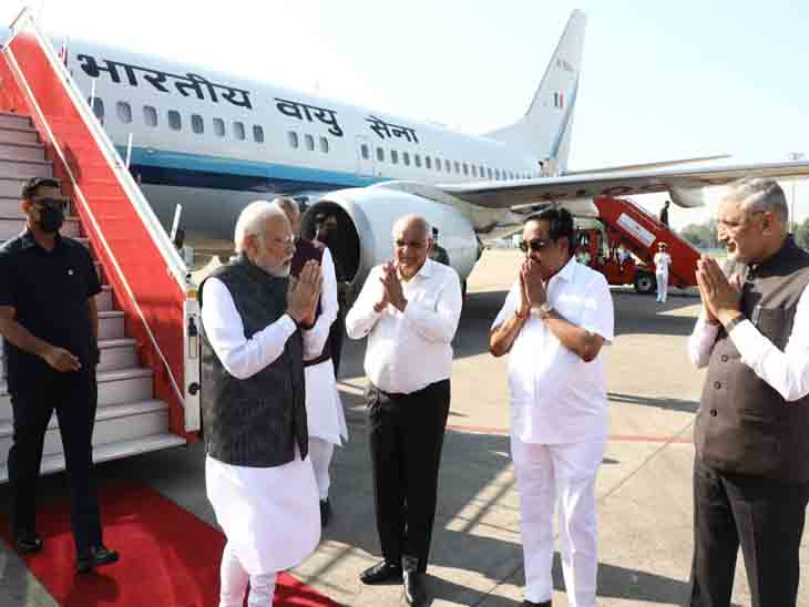 અમદાવાદ એરપોર્ટ પર CM ભૂપેન્દ્ર પટેલ સહિતના નેતાઓએ PM મોદીનું સ્વાગત કર્યું હતું.
