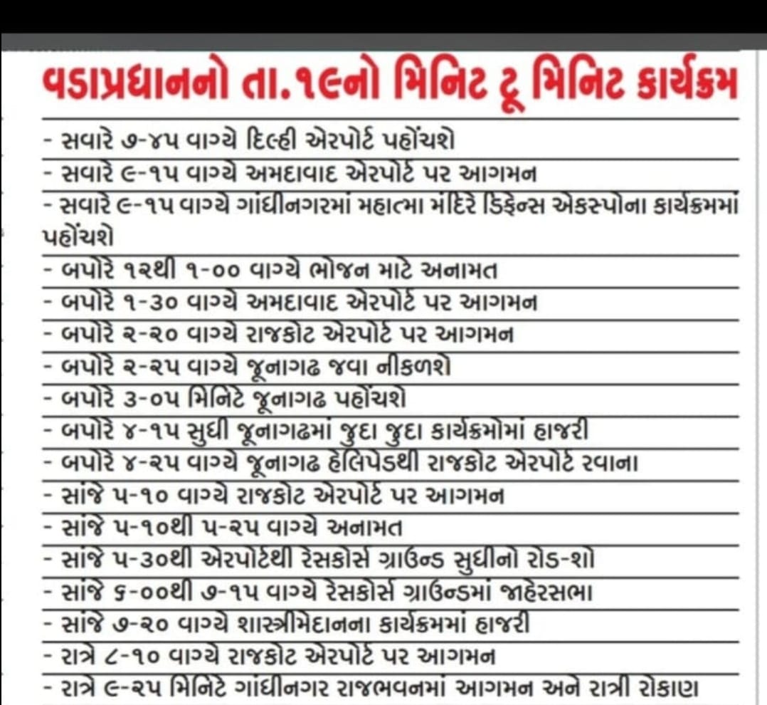 વડાપ્રધાન મોદીનો આજનો કાર્યક્રમ