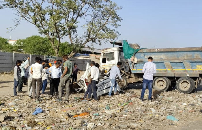 અમદાવાદમાં કાર અને ડમ્પર વચ્ચે ભીષણ ટક્કર, ત્રણ લોકોના મોત
